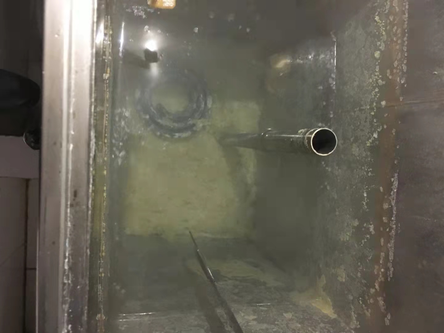 安装前(2019年2月22日)安装前可以看出开水炉炉壁水垢明显,成块状,粘附在炉壁上